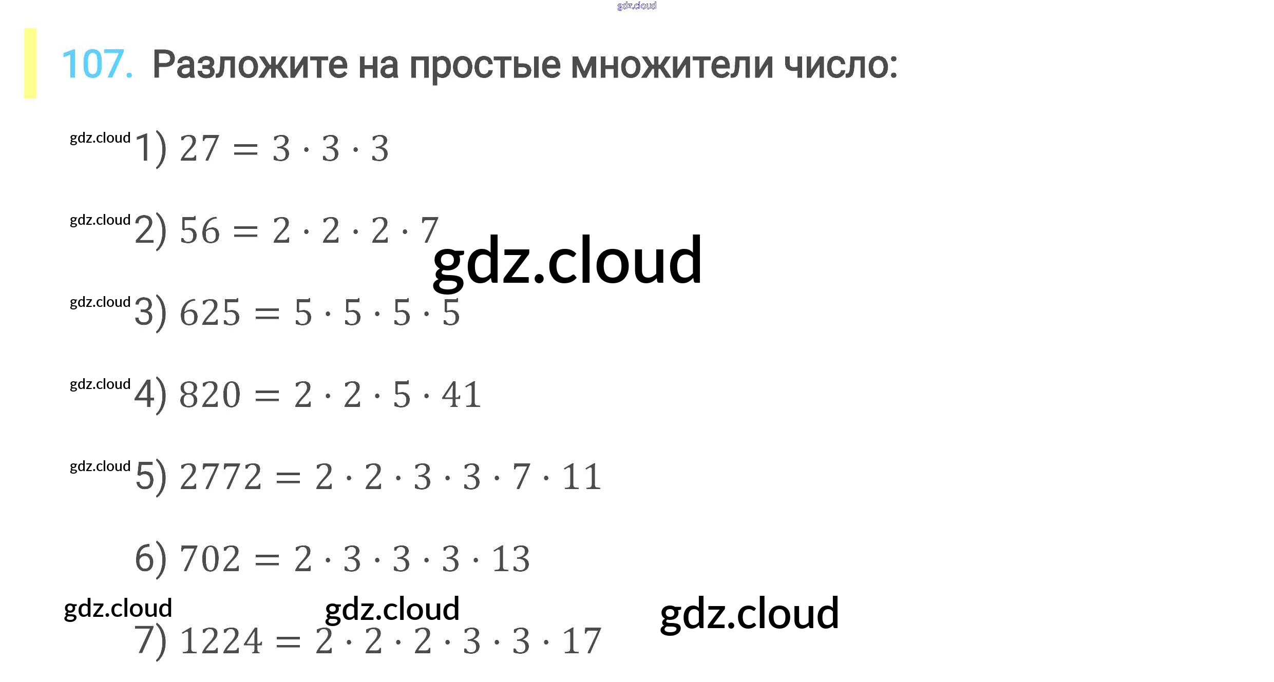 Ответ на задание 107 Учебник Математика за 6 (шестой) класс Мерзляк, Полонский, Якир Алгоритм успеха 2016