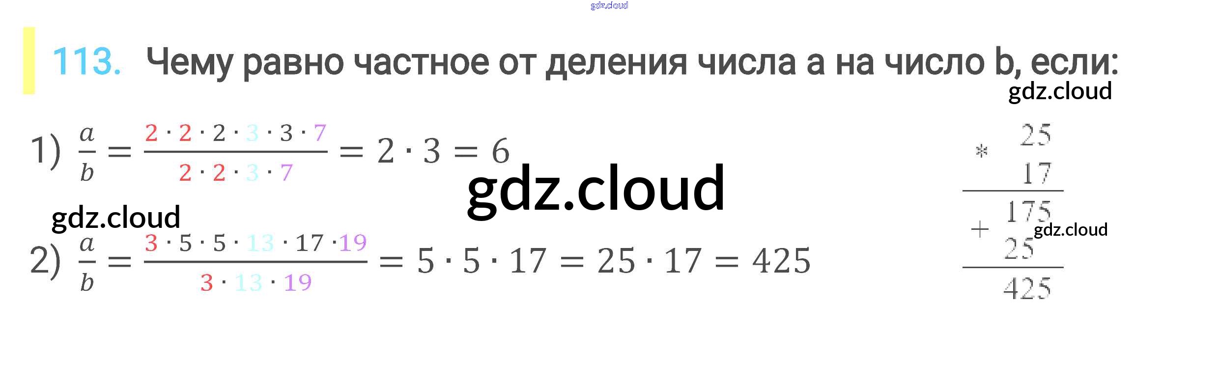 Ответ на задание 113 Учебник Математика за 6 (шестой) класс Мерзляк, Полонский, Якир Алгоритм успеха 2016