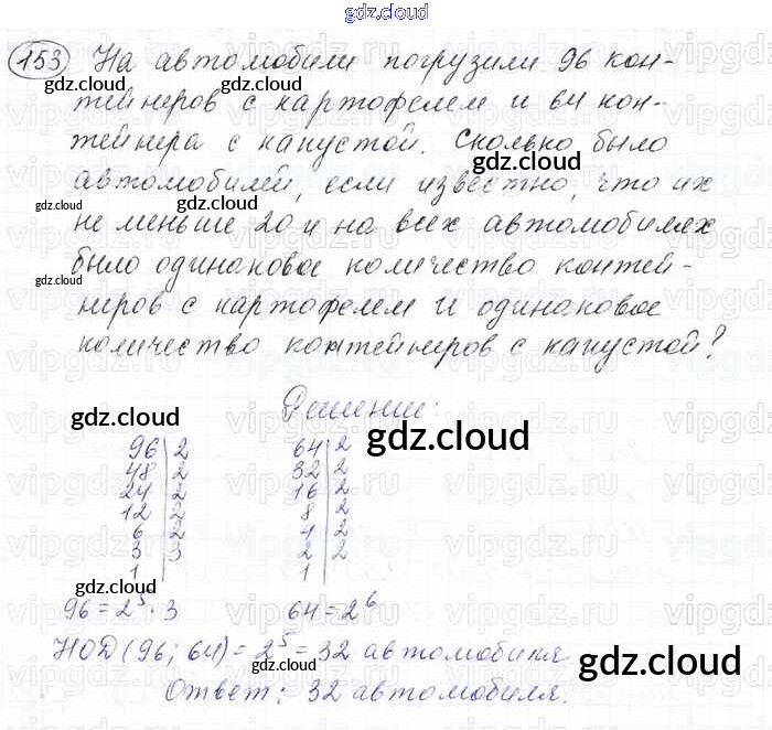 Ответ на задание 153 Учебник Математика за 6 (шестой) класс Мерзляк, Полонский, Якир Алгоритм успеха 2016