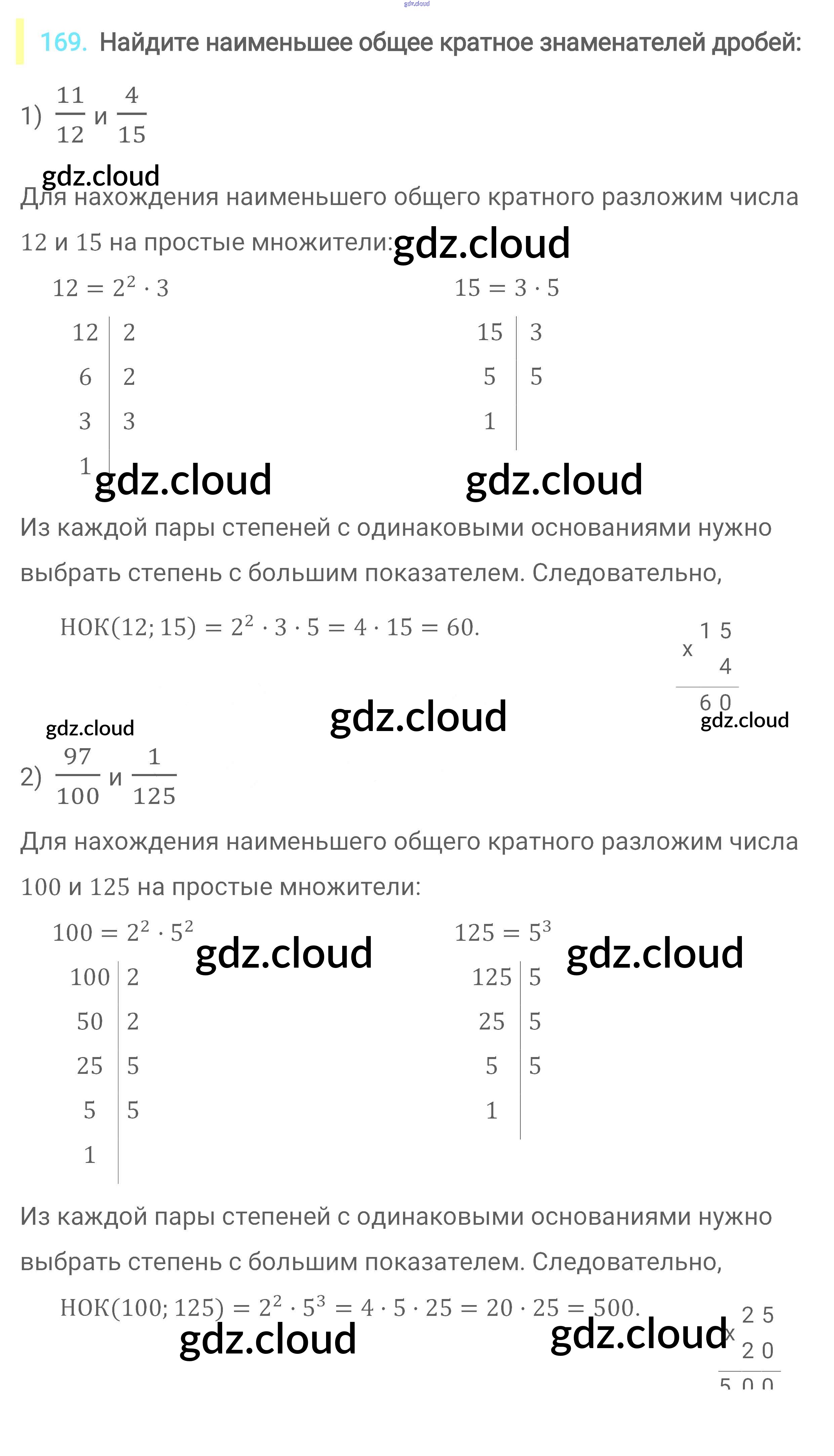 Ответ на задание 169 Учебник Математика за 6 (шестой) класс Мерзляк, Полонский, Якир Алгоритм успеха 2016