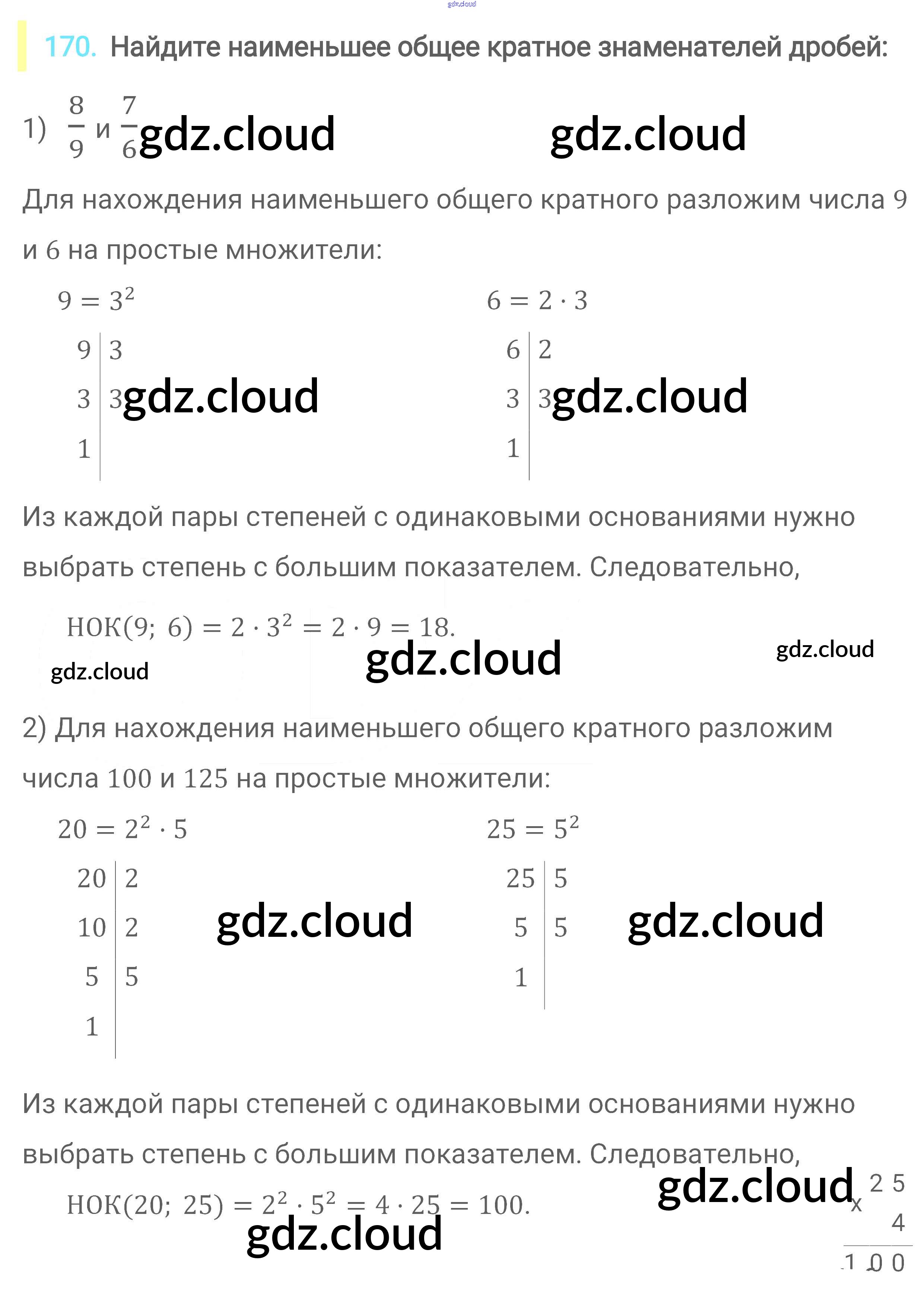 Ответ на задание 170 Учебник Математика за 6 (шестой) класс Мерзляк, Полонский, Якир Алгоритм успеха 2016