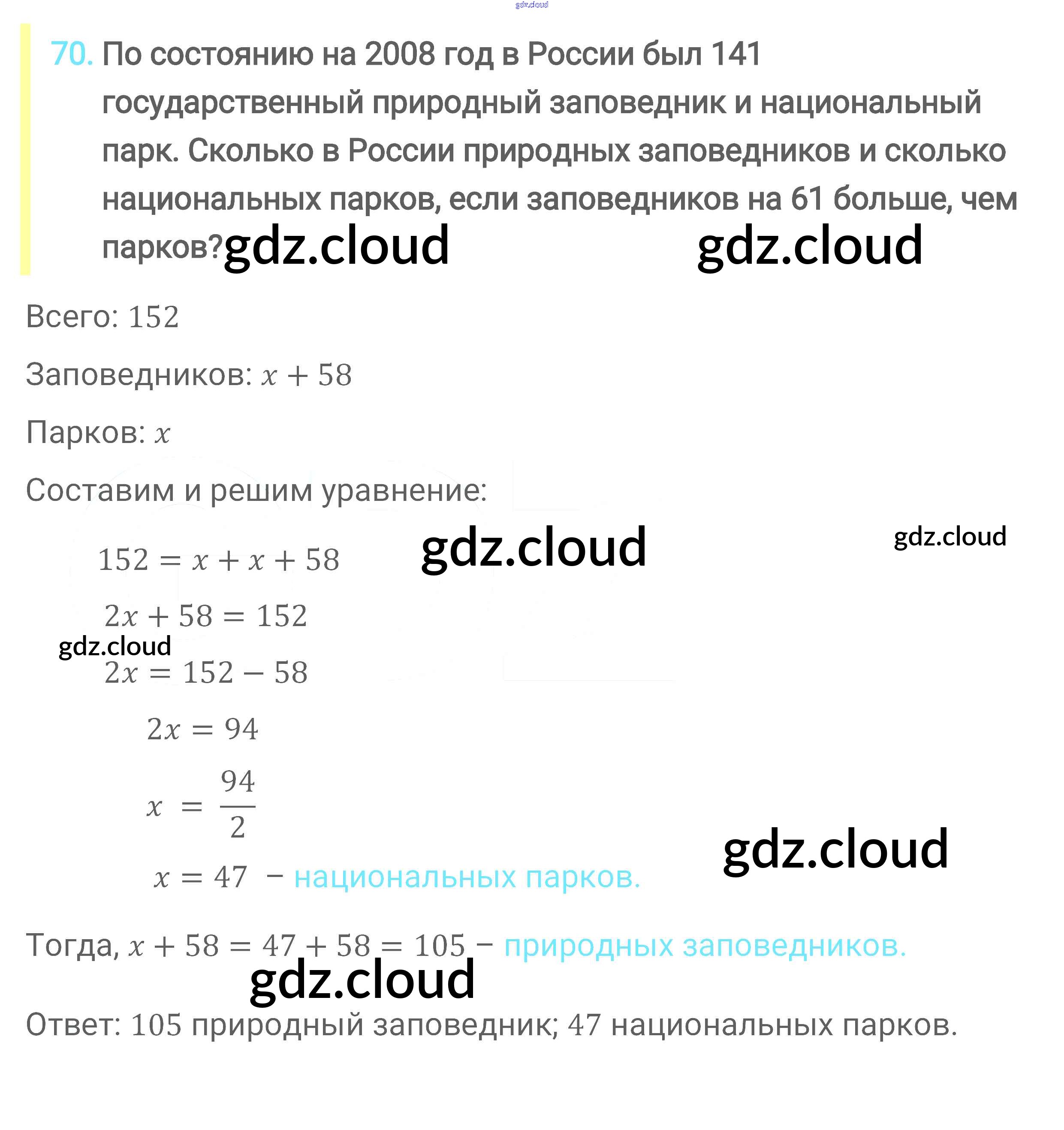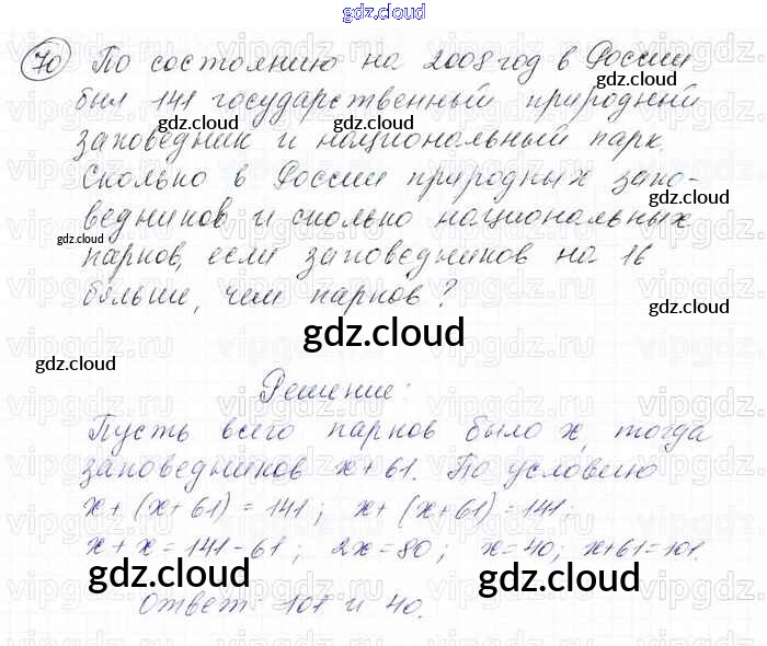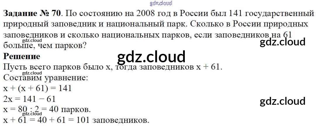 Ответ на задание 70 Учебник Математика за 6 (шестой) класс Мерзляк, Полонский, Якир Алгоритм успеха 2016