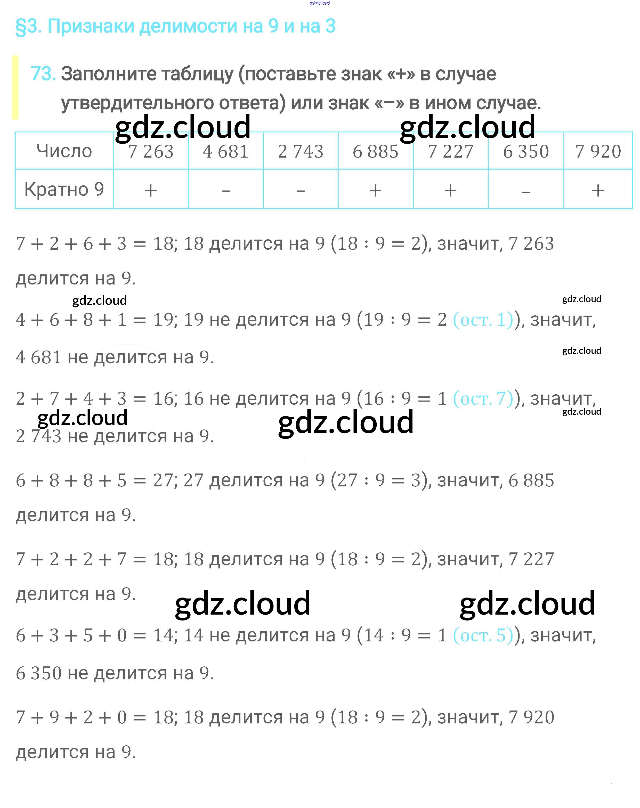 Ответ на задание 73 Учебник Математика за 6 (шестой) класс Мерзляк, Полонский, Якир Алгоритм успеха 2016