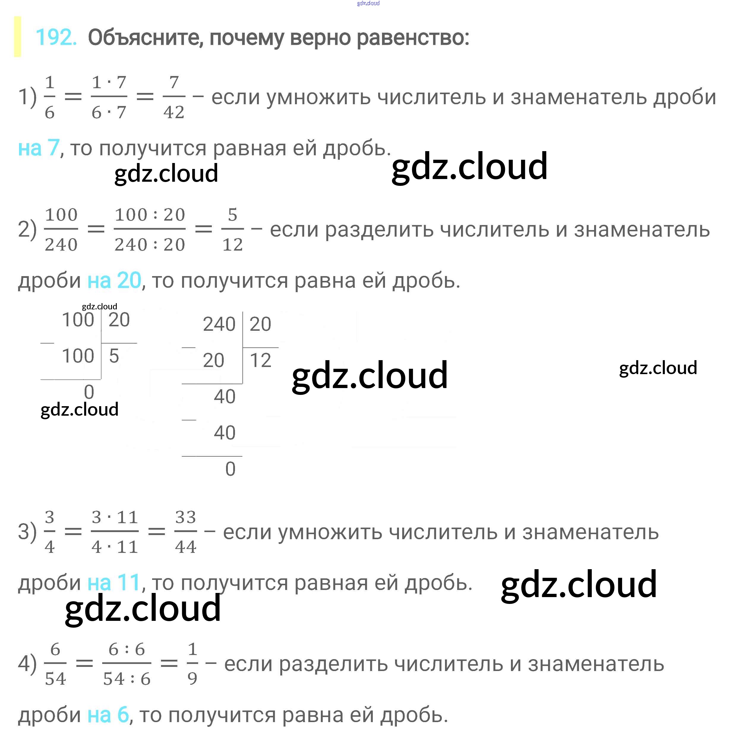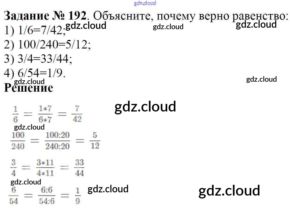 Ответ на задание 192 Учебник Математика за 6 (шестой) класс Мерзляк, Полонский, Якир Алгоритм успеха 2016