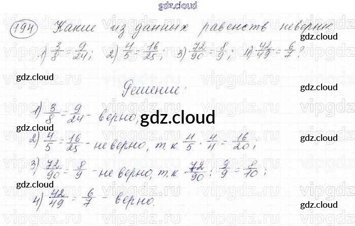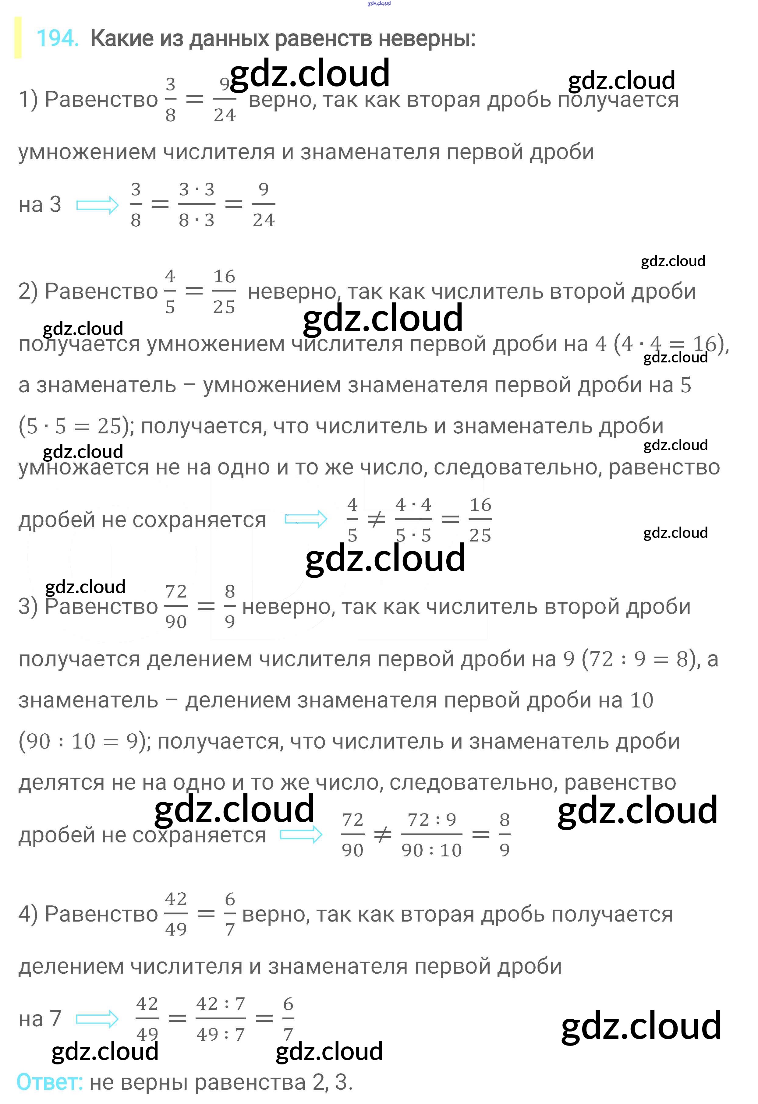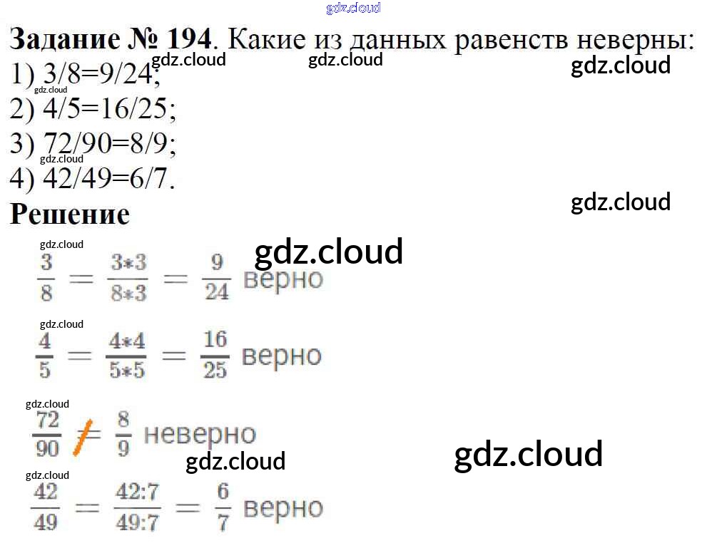 Ответ на задание 194 Учебник Математика за 6 (шестой) класс Мерзляк, Полонский, Якир Алгоритм успеха 2016