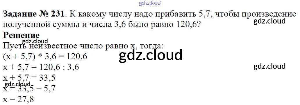 Ответ на задание 231 Учебник Математика за 6 (шестой) класс Мерзляк, Полонский, Якир Алгоритм успеха 2016