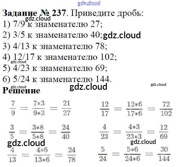 Ответ на задание 237 Учебник Математика за 6 (шестой) класс Мерзляк, Полонский, Якир Алгоритм успеха 2016