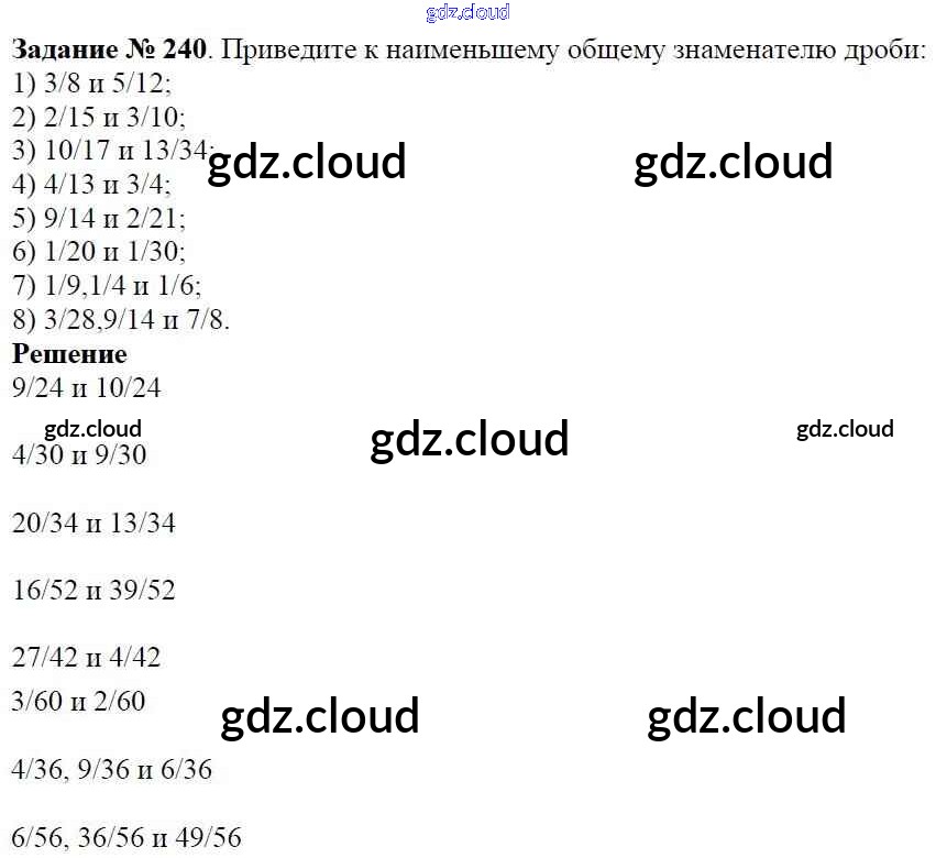 Ответ на задание 240 Учебник Математика за 6 (шестой) класс Мерзляк, Полонский, Якир Алгоритм успеха 2016