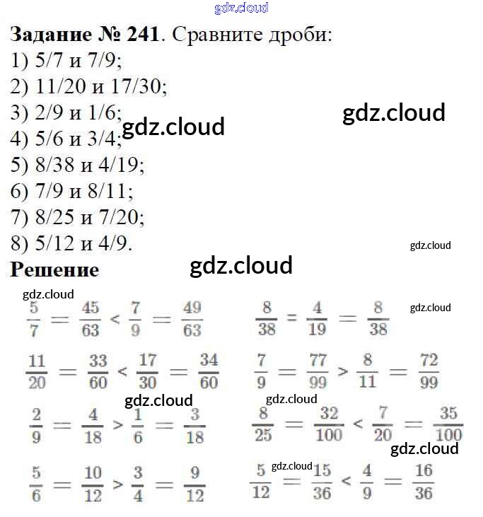 Ответ на задание 241 Учебник Математика за 6 (шестой) класс Мерзляк, Полонский, Якир Алгоритм успеха 2016