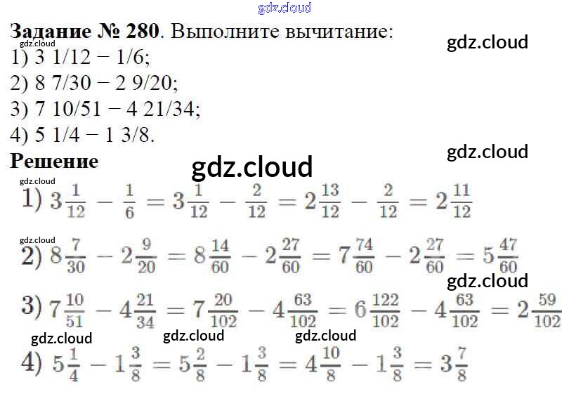 Ответ на задание 280 Учебник Математика за 6 (шестой) класс Мерзляк, Полонский, Якир Алгоритм успеха 2016