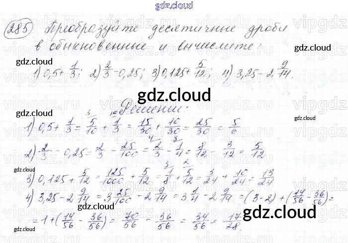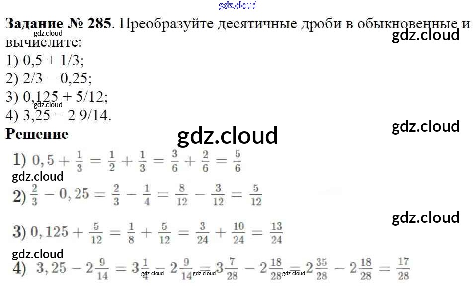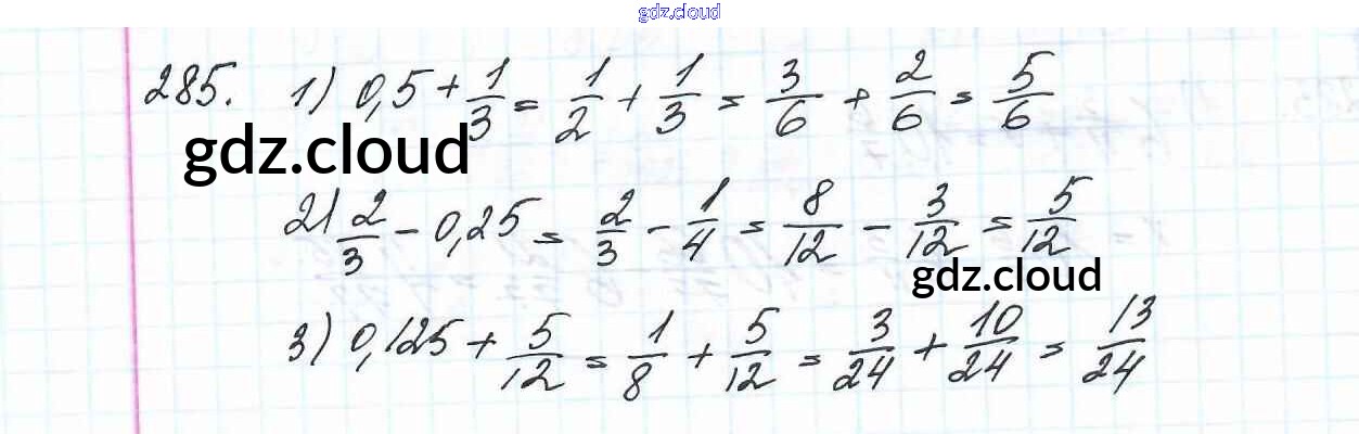 Ответ на задание 285 Учебник Математика за 6 (шестой) класс Мерзляк, Полонский, Якир Алгоритм успеха 2016