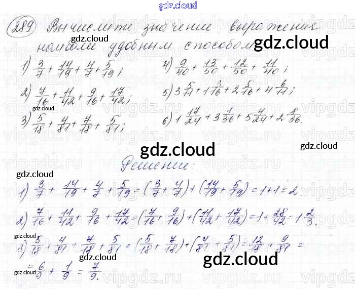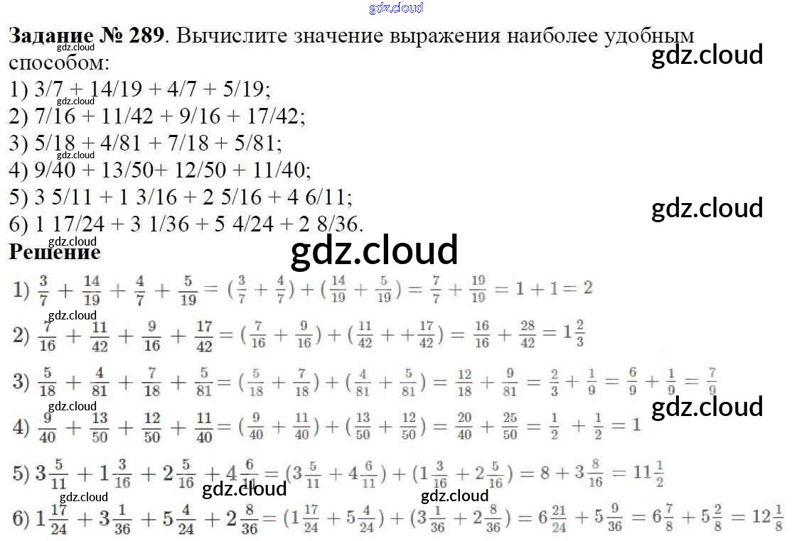 Ответ на задание 289 Учебник Математика за 6 (шестой) класс Мерзляк, Полонский, Якир Алгоритм успеха 2016
