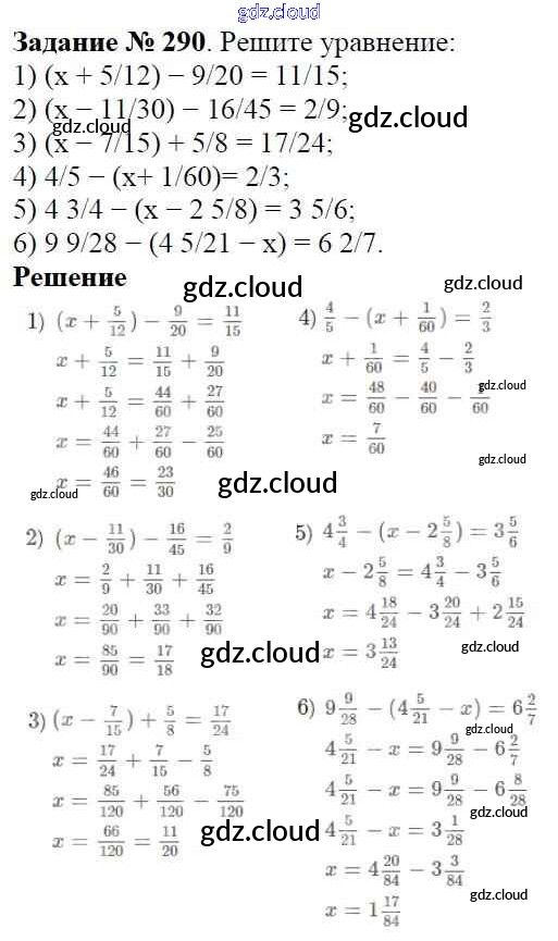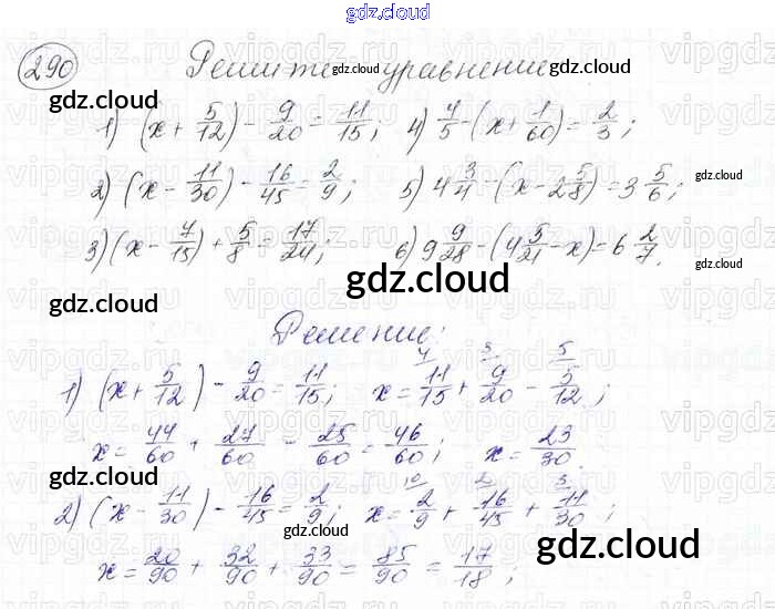 Ответ на задание 290 Учебник Математика за 6 (шестой) класс Мерзляк, Полонский, Якир Алгоритм успеха 2016
