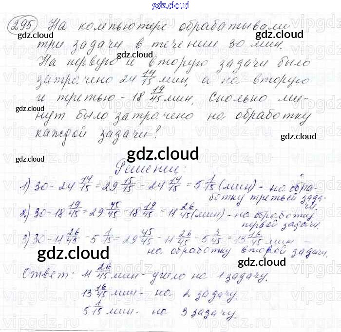 Ответ на задание 295 Учебник Математика за 6 (шестой) класс Мерзляк, Полонский, Якир Алгоритм успеха 2016