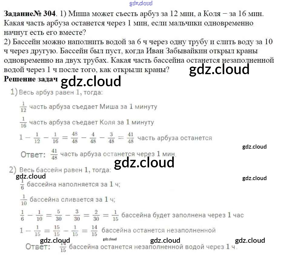 Ответ на задание 304 Учебник Математика за 6 (шестой) класс Мерзляк, Полонский, Якир Алгоритм успеха 2016