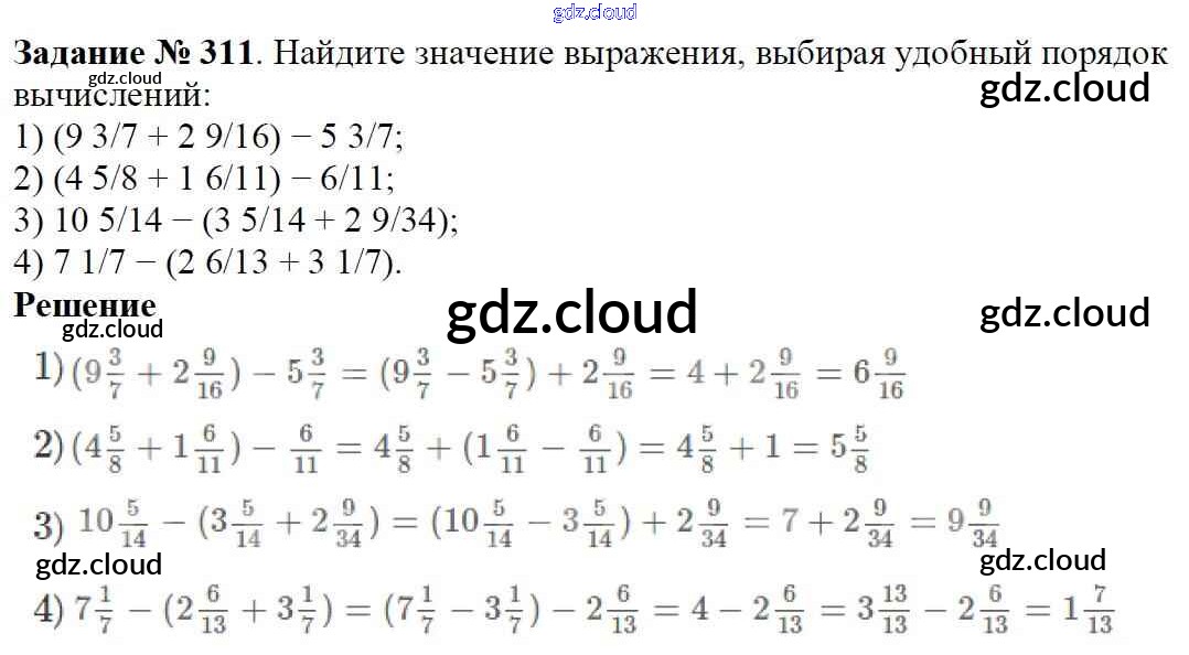 Ответ на задание 311 Учебник Математика за 6 (шестой) класс Мерзляк, Полонский, Якир Алгоритм успеха 2016