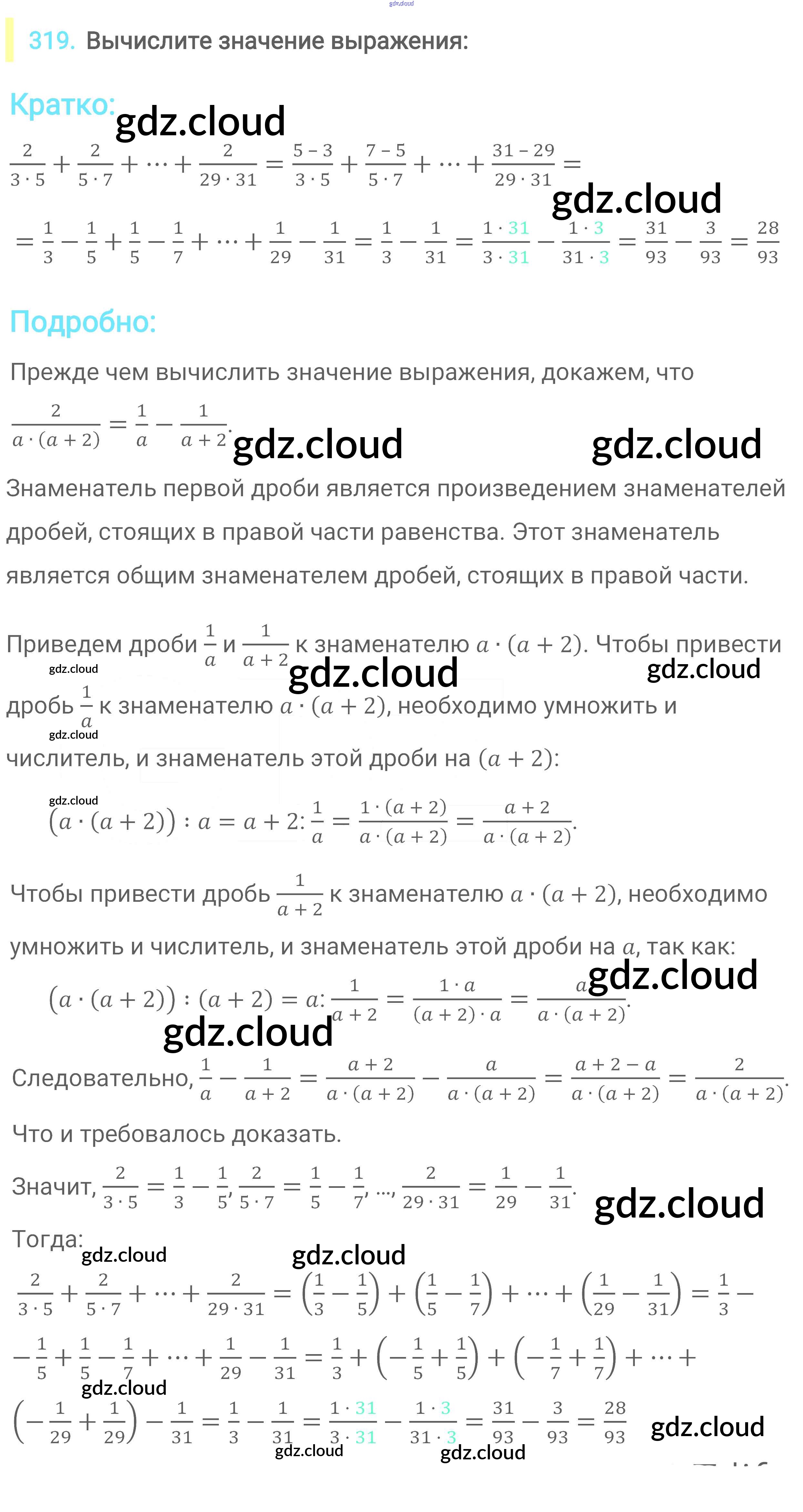 Ответ на задание 319 Учебник Математика за 6 (шестой) класс Мерзляк, Полонский, Якир Алгоритм успеха 2016