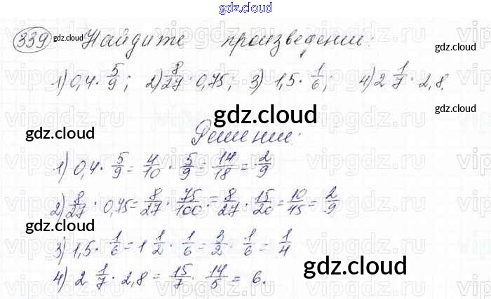 Ответ на задание 339 Учебник Математика за 6 (шестой) класс Мерзляк, Полонский, Якир Алгоритм успеха 2016