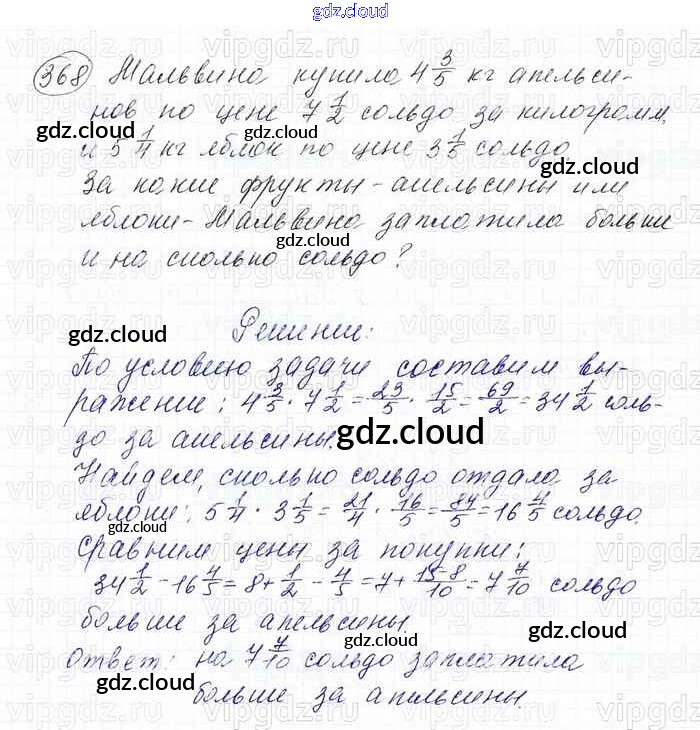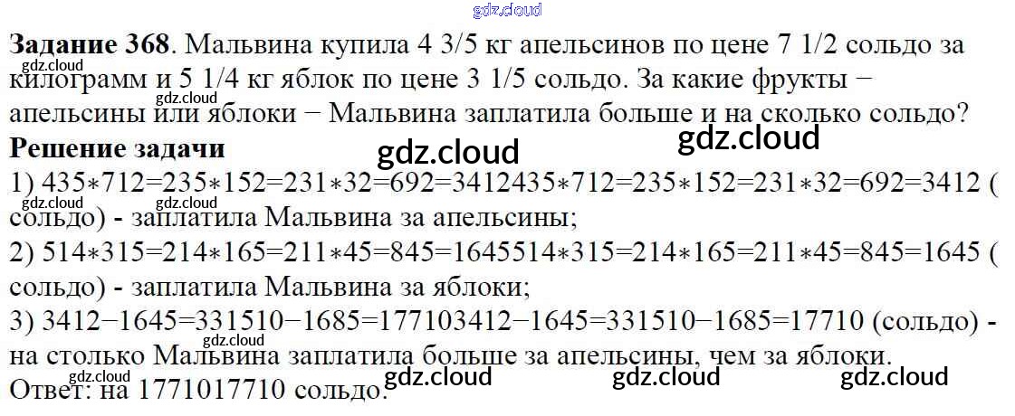 Ответ на задание 368 Учебник Математика за 6 (шестой) класс Мерзляк, Полонский, Якир Алгоритм успеха 2016
