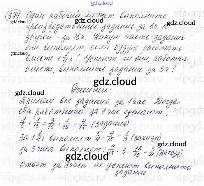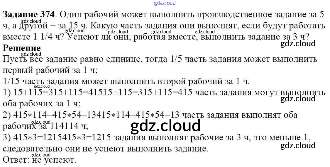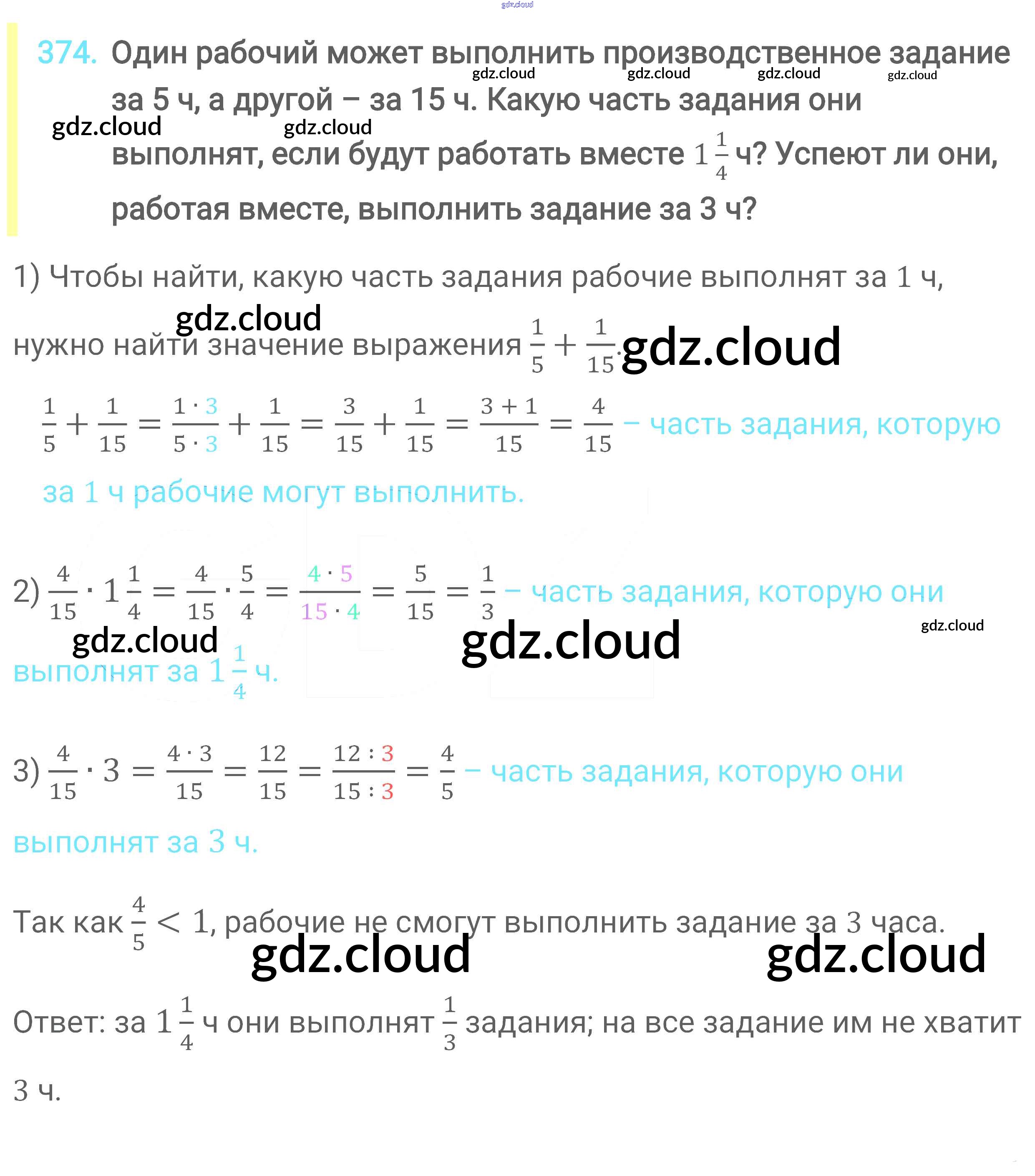 Ответ на задание 374 Учебник Математика за 6 (шестой) класс Мерзляк, Полонский, Якир Алгоритм успеха 2016