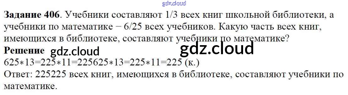 Ответ на задание 406 Учебник Математика за 6 (шестой) класс Мерзляк, Полонский, Якир Алгоритм успеха 2016