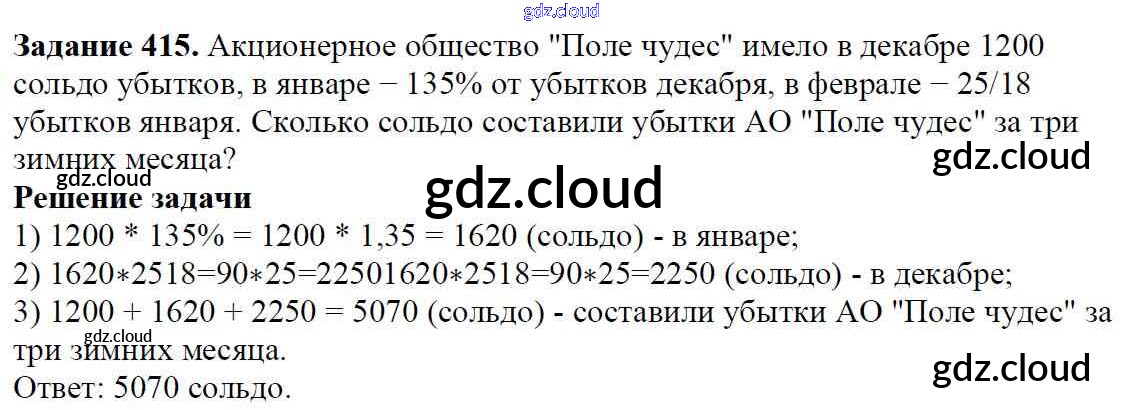 Ответ на задание 415 Учебник Математика за 6 (шестой) класс Мерзляк, Полонский, Якир Алгоритм успеха 2016