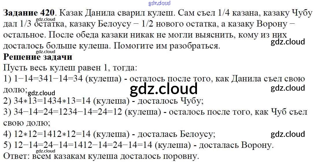 Ответ на задание 420 Учебник Математика за 6 (шестой) класс Мерзляк, Полонский, Якир Алгоритм успеха 2016