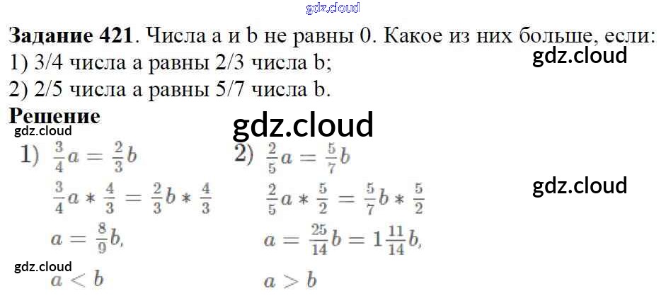 Ответ на задание 421 Учебник Математика за 6 (шестой) класс Мерзляк, Полонский, Якир Алгоритм успеха 2016