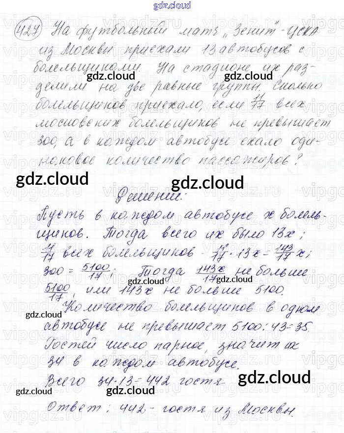 Ответ на задание 427 Учебник Математика за 6 (шестой) класс Мерзляк, Полонский, Якир Алгоритм успеха 2016
