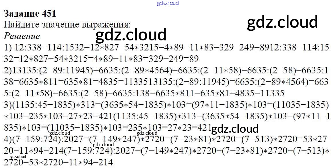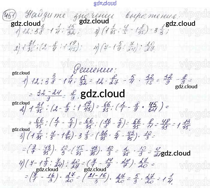 Ответ на задание 451 Учебник Математика за 6 (шестой) класс Мерзляк, Полонский, Якир Алгоритм успеха 2016