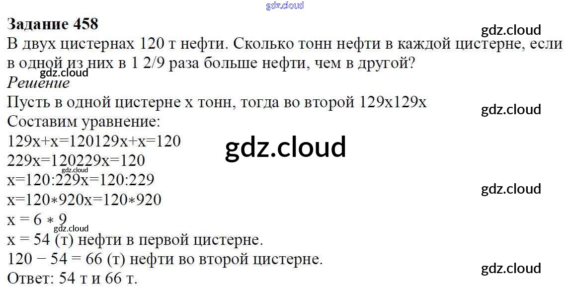 Ответ на задание 458 Учебник Математика за 6 (шестой) класс Мерзляк, Полонский, Якир Алгоритм успеха 2016