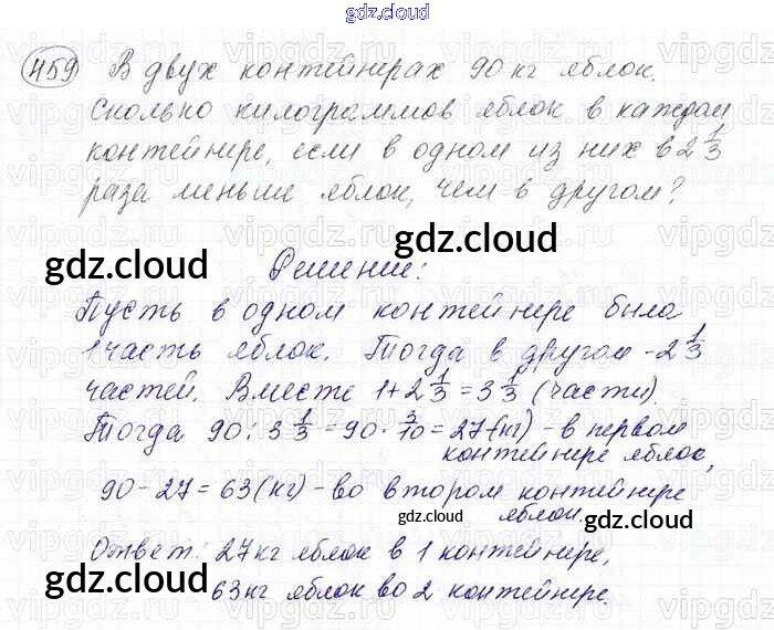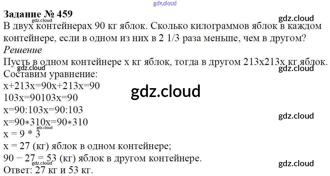 Ответ на задание 459 Учебник Математика за 6 (шестой) класс Мерзляк, Полонский, Якир Алгоритм успеха 2016