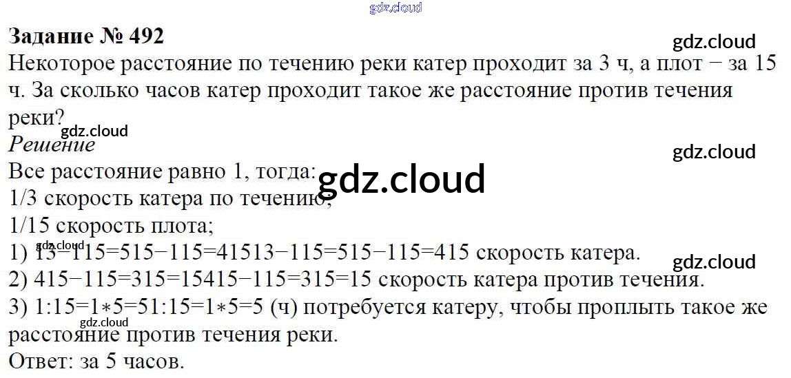 Ответ на задание 492 Учебник Математика за 6 (шестой) класс Мерзляк, Полонский, Якир Алгоритм успеха 2016