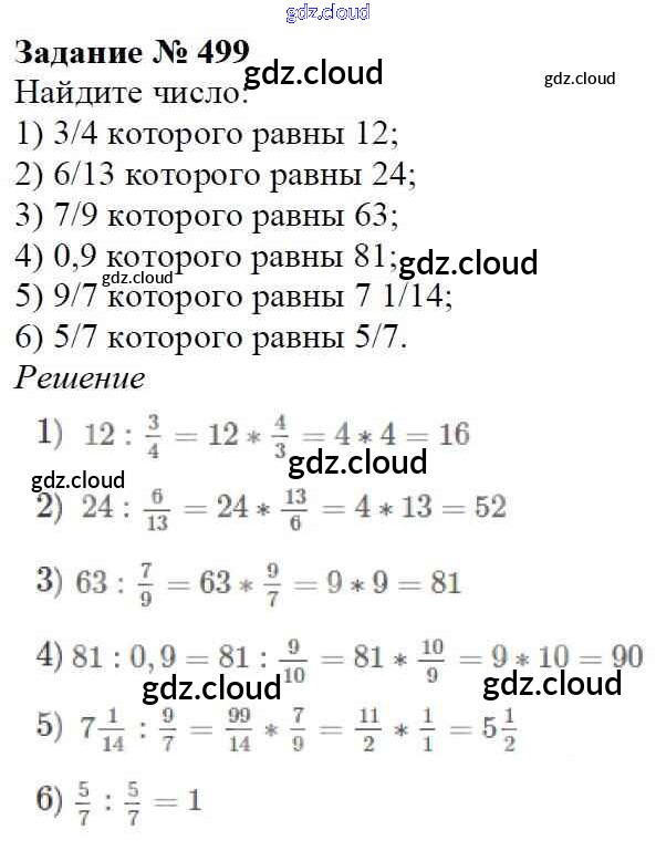 Ответ на задание 499 Учебник Математика за 6 (шестой) класс Мерзляк, Полонский, Якир Алгоритм успеха 2016