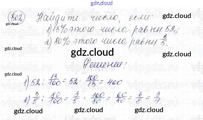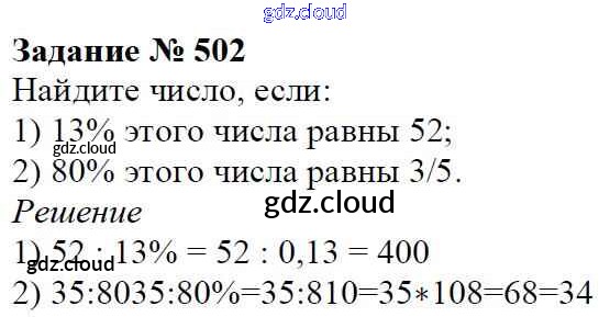Ответ на задание 502 Учебник Математика за 6 (шестой) класс Мерзляк, Полонский, Якир Алгоритм успеха 2016
