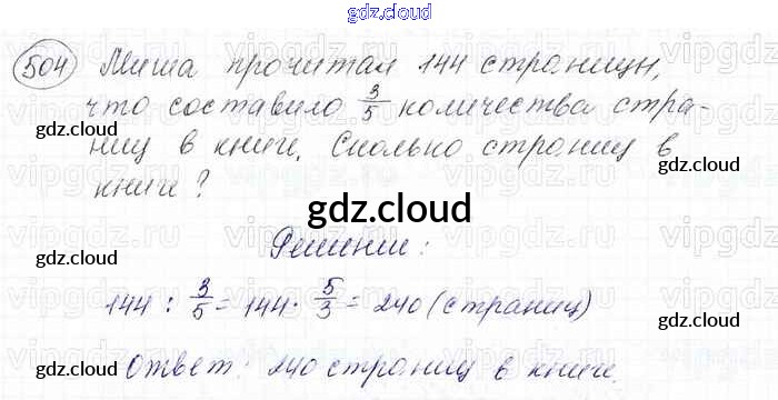 Ответ на задание 504 Учебник Математика за 6 (шестой) класс Мерзляк, Полонский, Якир Алгоритм успеха 2016