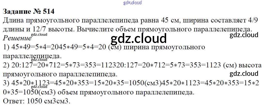 Ответ на задание 514 Учебник Математика за 6 (шестой) класс Мерзляк, Полонский, Якир Алгоритм успеха 2016