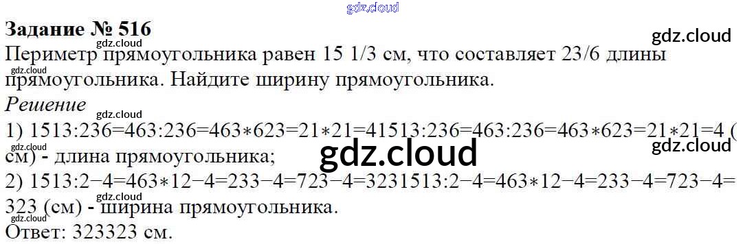 Ответ на задание 516 Учебник Математика за 6 (шестой) класс Мерзляк, Полонский, Якир Алгоритм успеха 2016