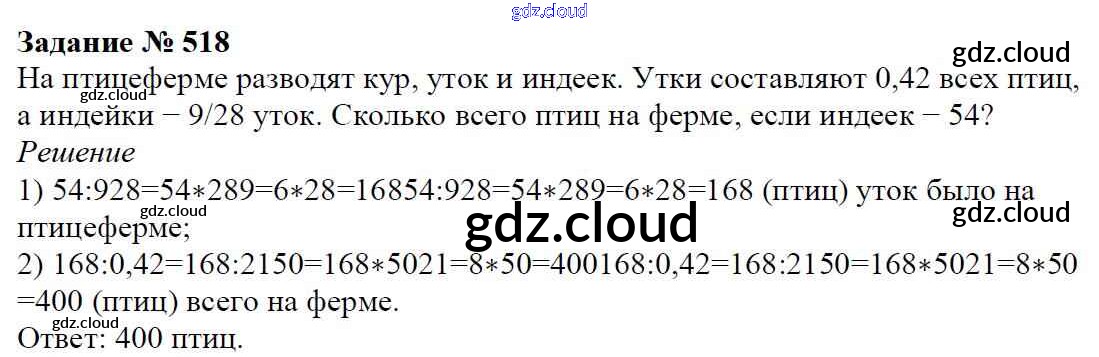 Ответ на задание 518 Учебник Математика за 6 (шестой) класс Мерзляк, Полонский, Якир Алгоритм успеха 2016