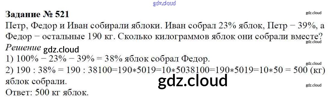 Ответ на задание 521 Учебник Математика за 6 (шестой) класс Мерзляк, Полонский, Якир Алгоритм успеха 2016