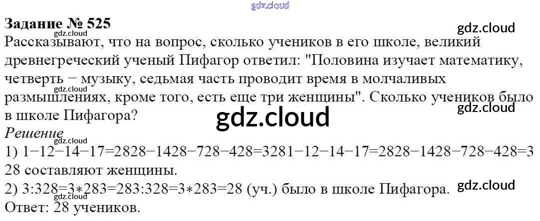 Ответ на задание 525 Учебник Математика за 6 (шестой) класс Мерзляк, Полонский, Якир Алгоритм успеха 2016