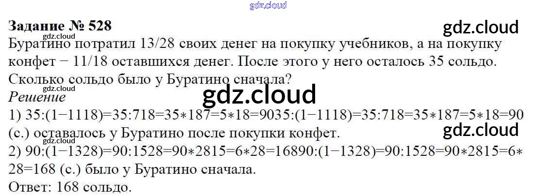 Ответ на задание 528 Учебник Математика за 6 (шестой) класс Мерзляк, Полонский, Якир Алгоритм успеха 2016