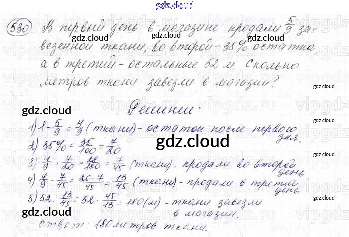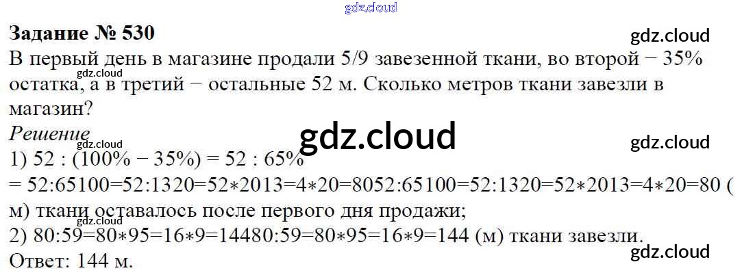 Ответ на задание 530 Учебник Математика за 6 (шестой) класс Мерзляк, Полонский, Якир Алгоритм успеха 2016