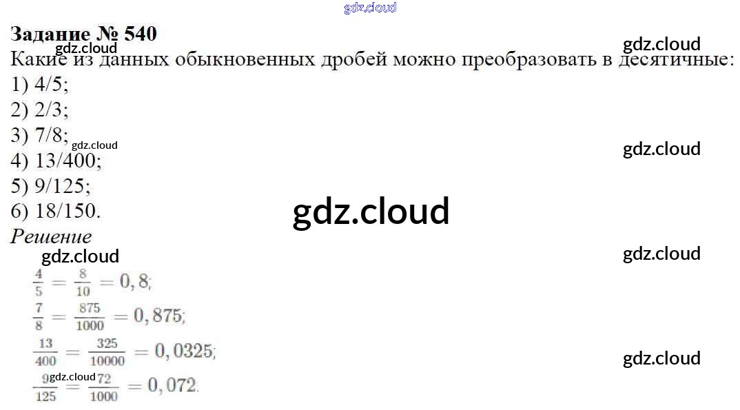 Ответ на задание 540 Учебник Математика за 6 (шестой) класс Мерзляк, Полонский, Якир Алгоритм успеха 2016