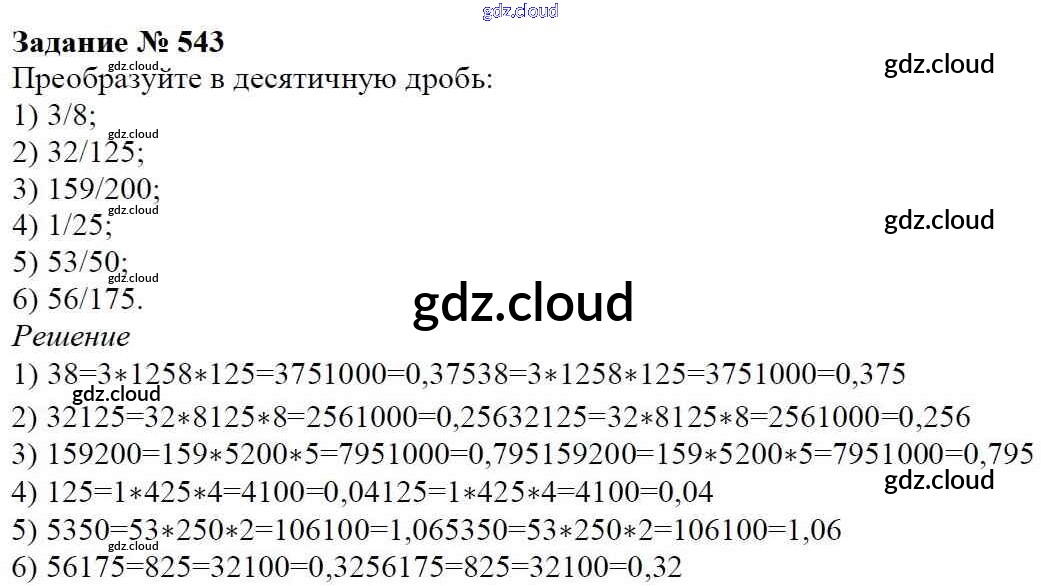 Ответ на задание 543 Учебник Математика за 6 (шестой) класс Мерзляк, Полонский, Якир Алгоритм успеха 2016