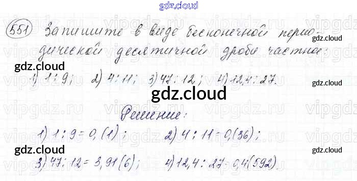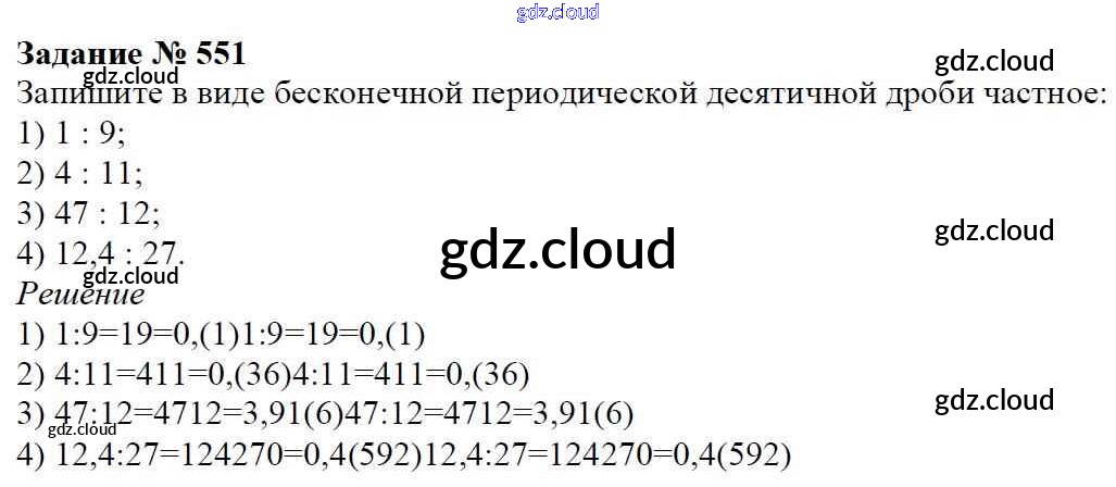 Ответ на задание 551 Учебник Математика за 6 (шестой) класс Мерзляк, Полонский, Якир Алгоритм успеха 2016