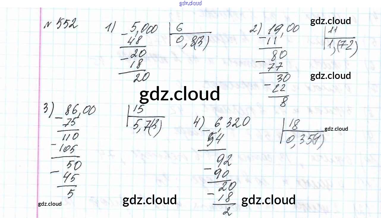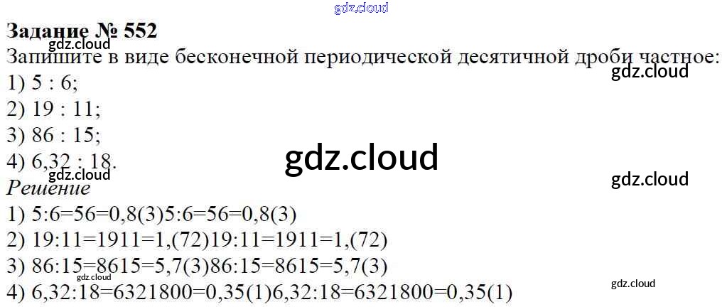 Ответ на задание 552 Учебник Математика за 6 (шестой) класс Мерзляк, Полонский, Якир Алгоритм успеха 2016