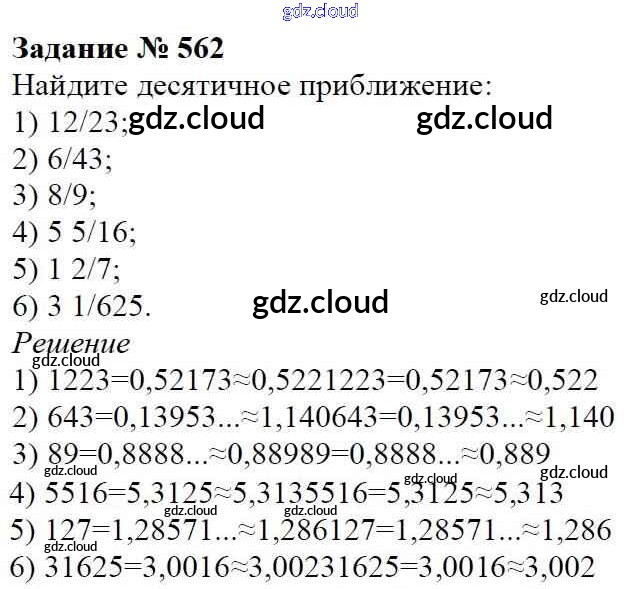 Ответ на задание 562 Учебник Математика за 6 (шестой) класс Мерзляк, Полонский, Якир Алгоритм успеха 2016