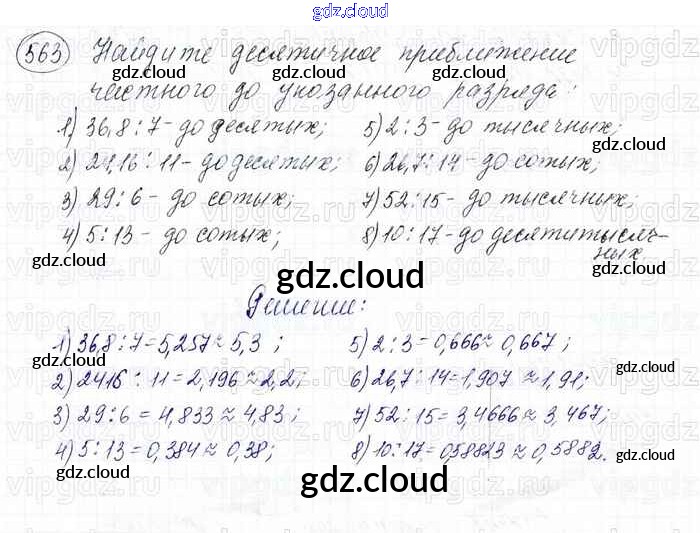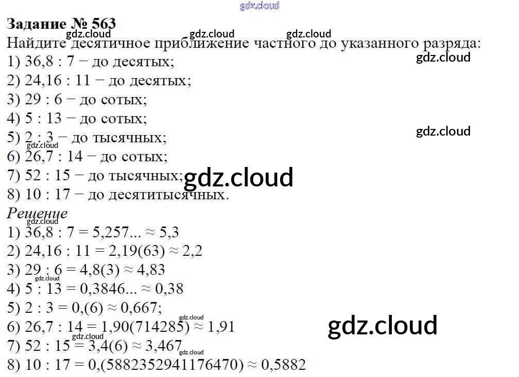 Ответ на задание 563 Учебник Математика за 6 (шестой) класс Мерзляк, Полонский, Якир Алгоритм успеха 2016