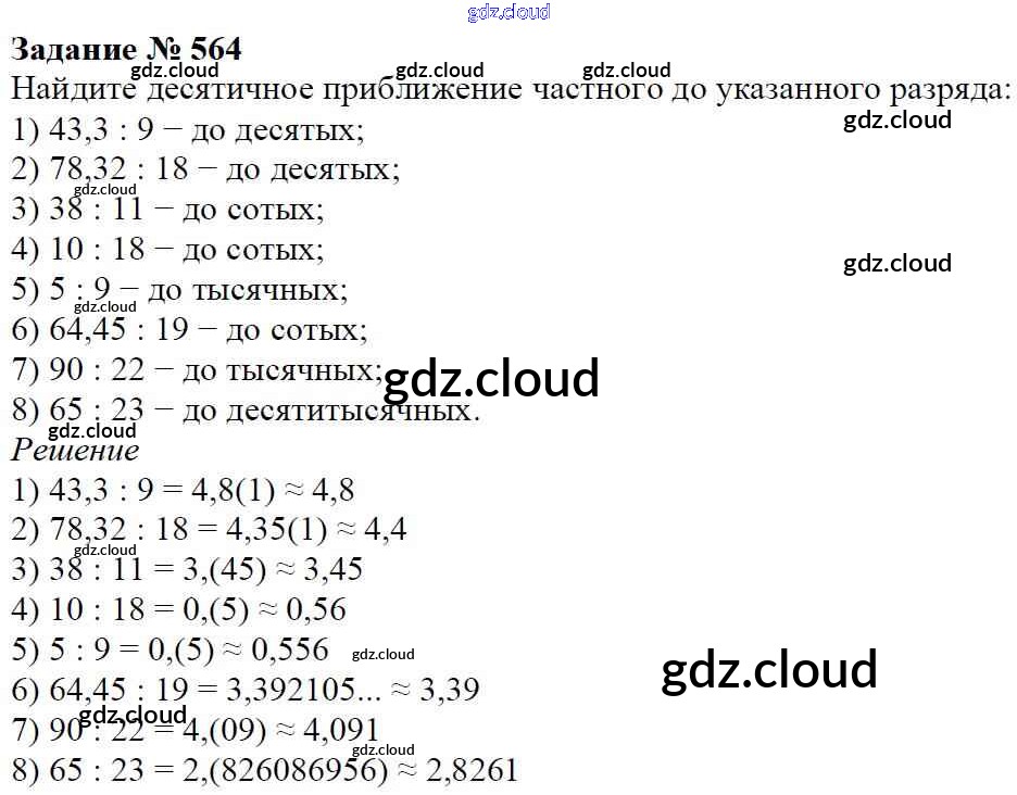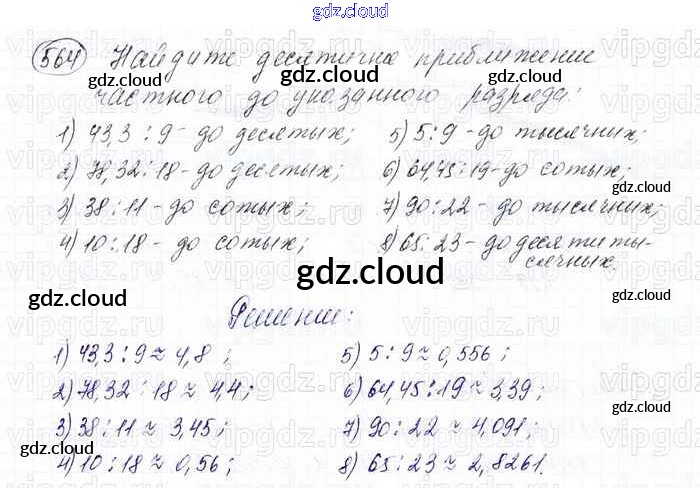Ответ на задание 564 Учебник Математика за 6 (шестой) класс Мерзляк, Полонский, Якир Алгоритм успеха 2016
